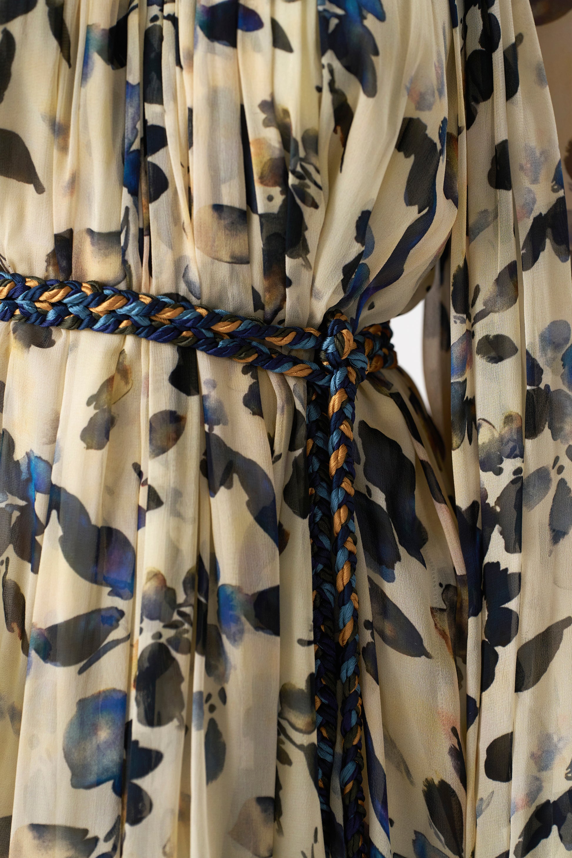 Make a statement in our Zyra Printed Dress, inspired by midnight florals in watercolor tones of navy, ink, and sand. Crafted from airy georgette, this dreamy silhouette features voluminous bishop sleeves, a high gathered neckline, and a flowy A-line skirt that moves with grace. The cinched braided belt accentuates the waist, adding structure to the soft, romantic drape of the fabric. The Midnight Bloom floral pattern offers a contemporary twist on a timeless shape—perfect for evening events, or any moment that calls for standout style.